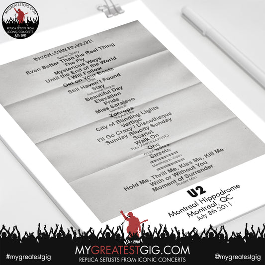 U2 - Montreal - July 8th 2011 Replica Setlist Poster