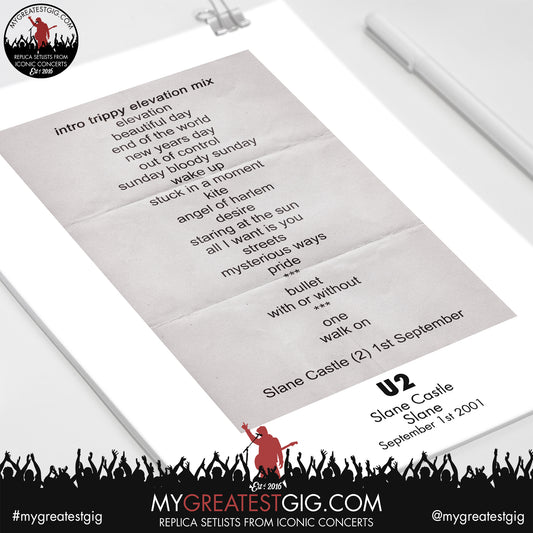 U2 - Slane Castle - September 1st 2001 Replica Setlist Poster
