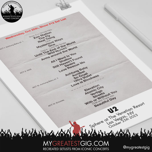 U2 - Las Vegas - October 25th 2023 Replica Setlist Poster