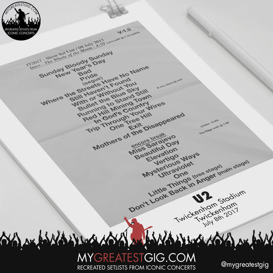 U2 - Twickenham - July 8th 2017 Recreated Setlist Poster