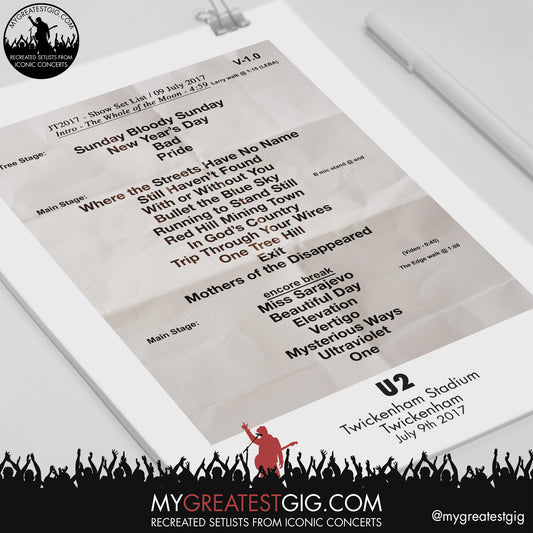 U2 - Twickenham - July 9th 2017 Recreated Setlist Poster