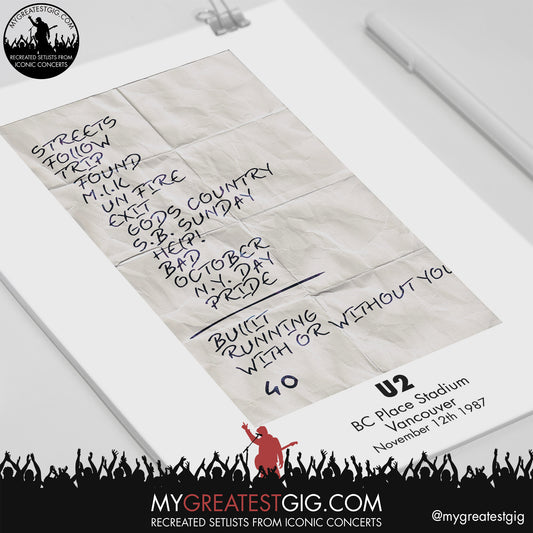 U2 - Vancouver - November 12th 1987 Recreated Setlist Poster