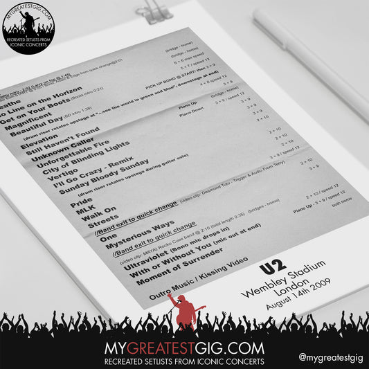 U2 - London - August 14th 2009 Recreated Setlist Poster