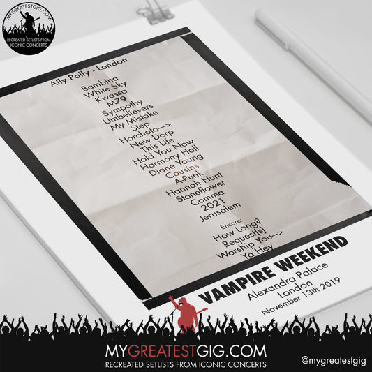 Vampire Weekend - London - November 13th 2019 Recreated Setlist Poster