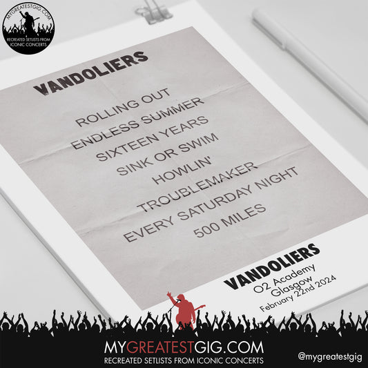 Vandoliers - Glasgow - February 22nd 2024 Replica Setlist Poster