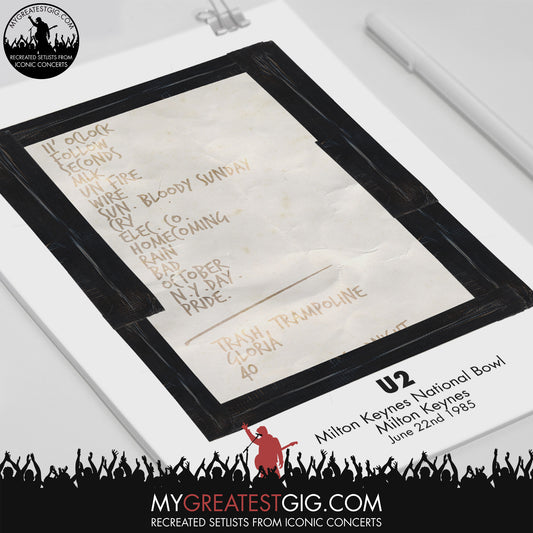 U2 - Milton Keynes - Jun 22nd 1985 Recreated Set List Poster