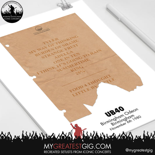 UB40 - Birmingham - Nov 6th 1980 Recreated Setlist Poster