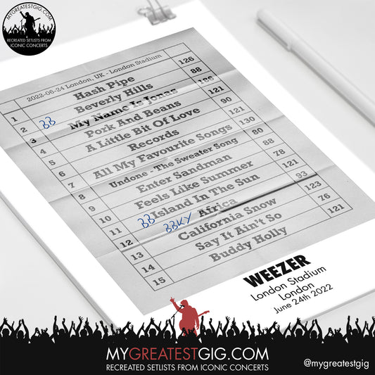 Weezer - London - Jun 24th 2022 Recreated Setlist Poster