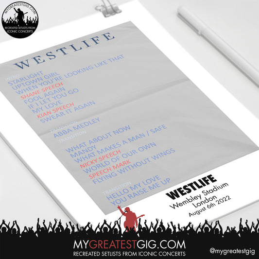 Westlife - London - Aug 6th 2022 Recreated Setlist Poster