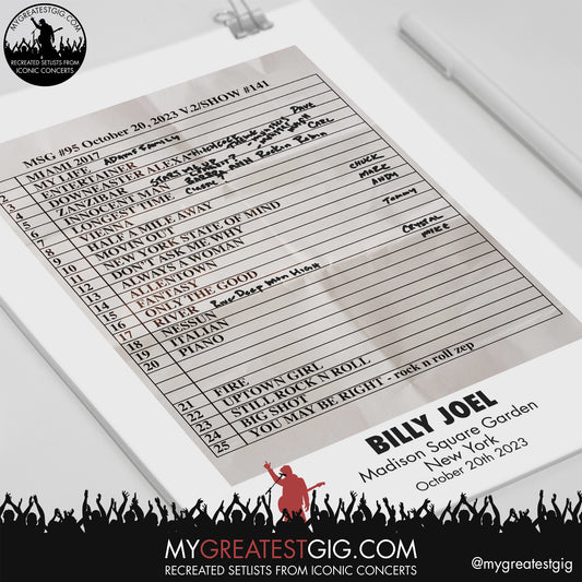 Billy Joel - New York - October 20th 2023 Recreated Setlist Poster