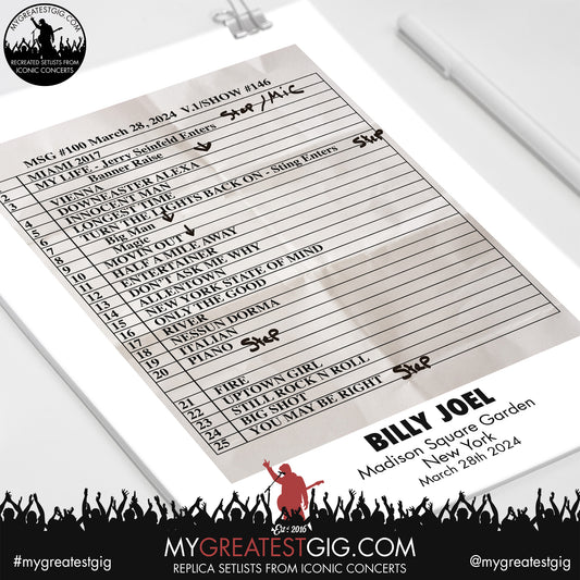 Billy Joel - New York - March 28th 2024 Replica Setlist Poster