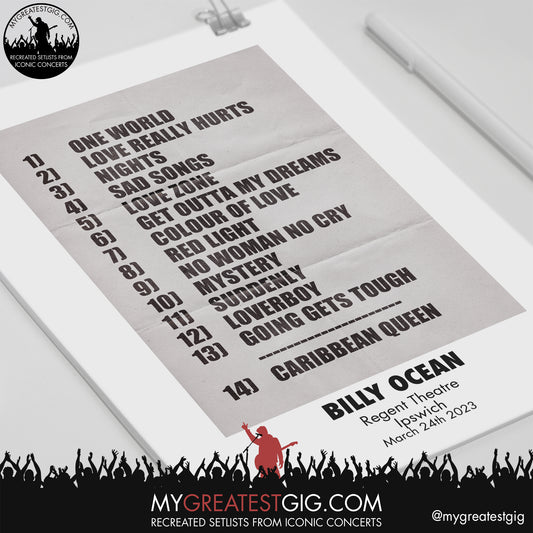 Billy Ocean - Ipswich - March 24th 2023 Recreated Setlist Poster