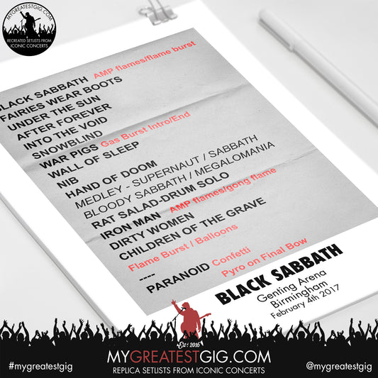 Black Sabbath - Birmingham - February 4th 2017 Replica Setlist Poster