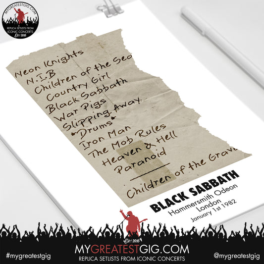 Black Sabbath - London - January 1st 1982 Replica Setlist Poster