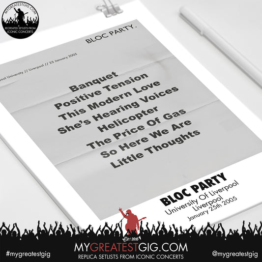 Bloc Party - Liverpool - January 25th 2005 Replica Setlist Poster