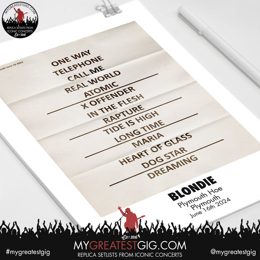 Blondie - Plymouth - June 16th 2024 Replica Setlist Poster