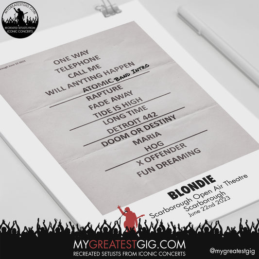 Blondie - Scarborough - June 22nd 2023 Recreated Setlist Poster