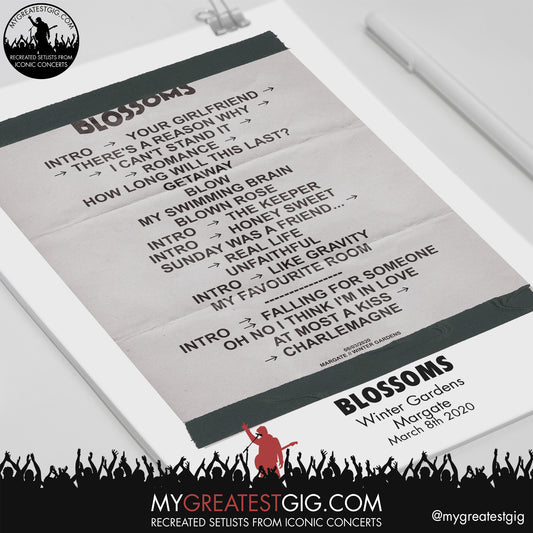 Blossoms - Margate - March 6th 2020 Replica Setlist Poster
