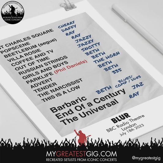 Blur - BBC Radio - July 18th 2023 Recreated Setlist Poster