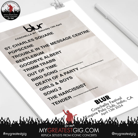 Blur - Coachella - April 13th 2024 Replica Setlist Poster
