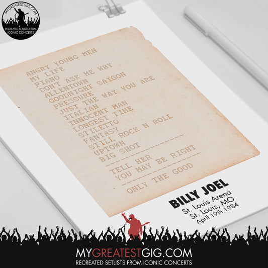 Billy Joel - St. Louis - Apr 19th 1984 Recreated Set List Poster