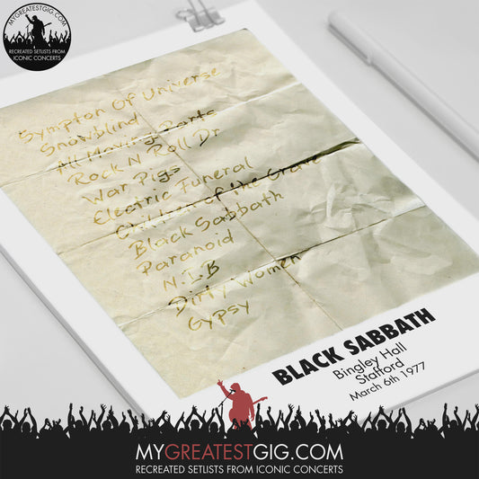 Black Sabbath - Stafford - March 6th 1977 Recreated Set List Poster