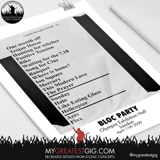 Bloc Party - London - Apr 11th 2009 Recreated Setlist Poster