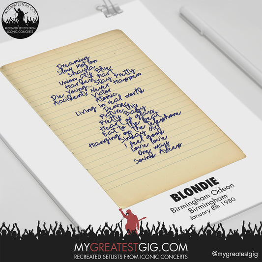 Blondie - Birmingham - Jan 8th 1980 Recreated Setlist Poster