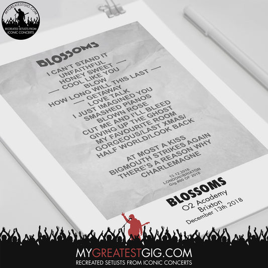 Blossoms - London - Dec 13th 2018 Recreated Set List Poster