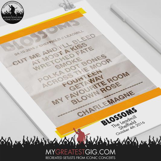 Blossoms - The Leadmill - Sheffield - Oct 4th 2016 Recreated Setlist Poster