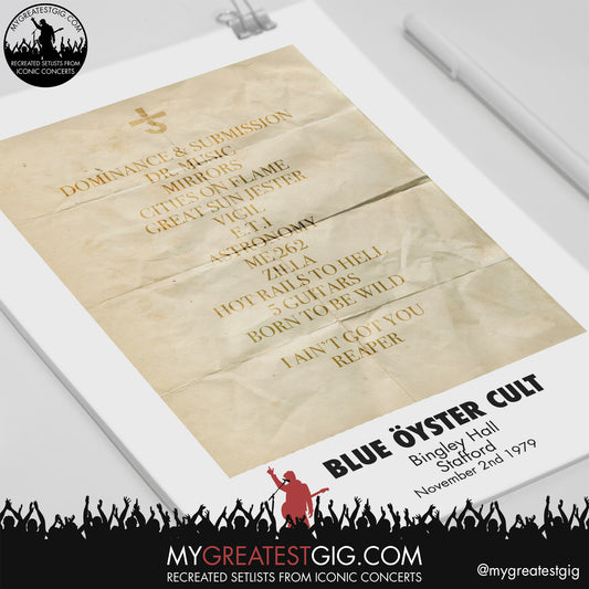 Blue Oyster Cult - Stafford - November 2nd 1979 Recreated Setlist Poster