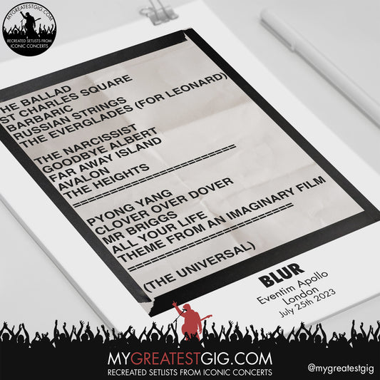 Blur - London - July 25th 2023 Recreated Setlist Poster