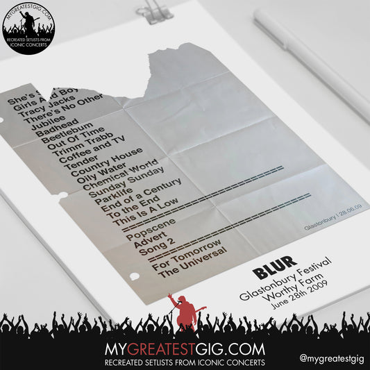 Blur - Glastonbury Festival - June 28th 2009 Recreated Setlist Poster