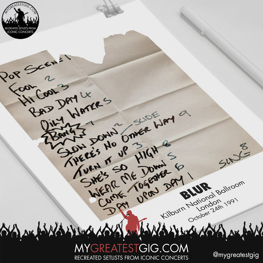 Blur - London - October 24th 1991 Recreated Setlist Poster