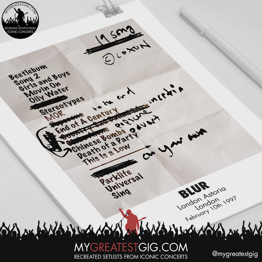 Blur - London - February 10th 1997 Replica Setlist Poster