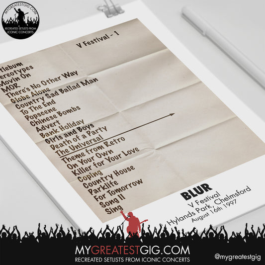 Blur - V Festival - August 16th 1997 Recreated Setlist Poster