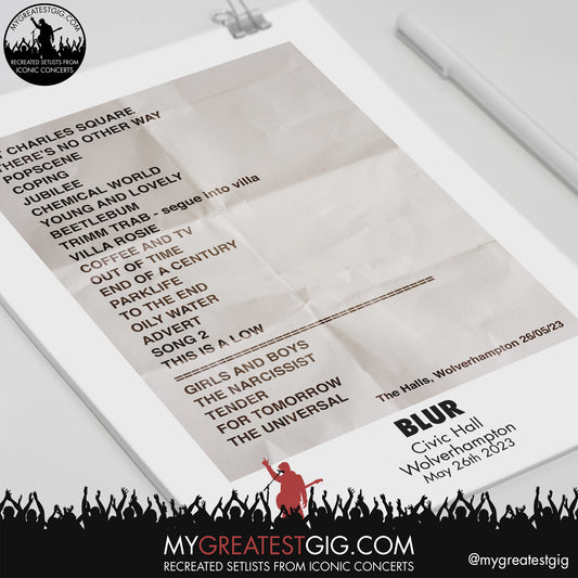 Blur - Wolverhampton - May 26th 2023 Recreated Setlist Poster