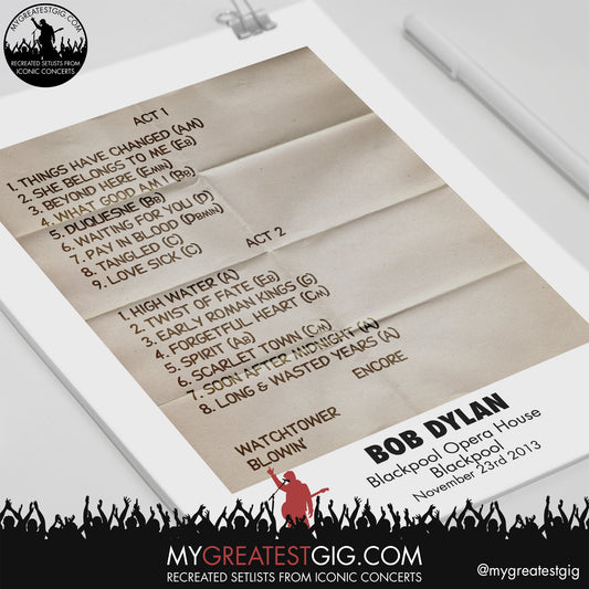 Bob Dylan - Blackpool - November 23rd 2013 Recreated Setlist Poster