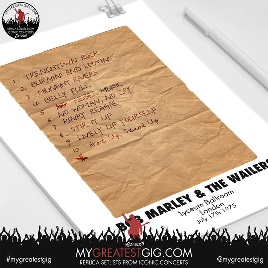 Bob Marley & The Wailers - London - July 17th 2024 Replica Setlist Poster