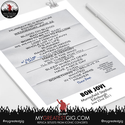 Bon Jovi - Edinburgh - June 22nd 2011 Replica Setlist Poster