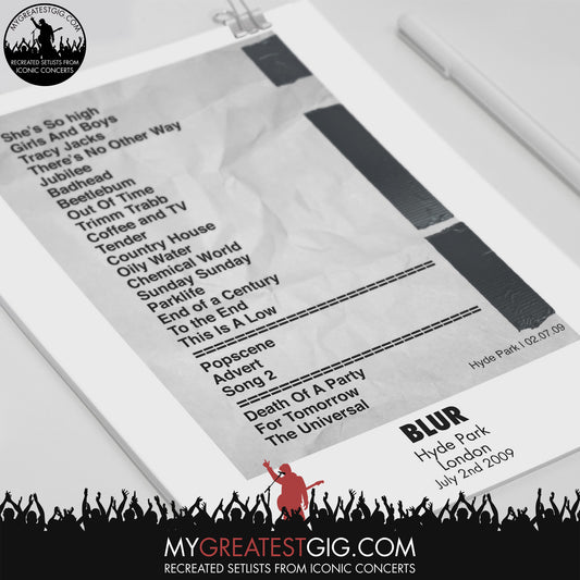 Blur - Hyde Park - Jul 2nd 2009 Recreated Set List Poster & Illustration Bundle