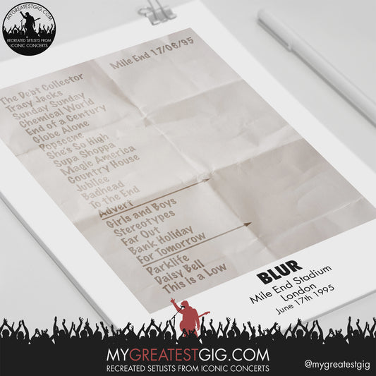 Blur - London - Jun 17th 1995 Recreated Setlist Poster