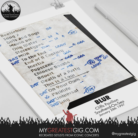 Blur - Southend - Jan 28th 1997 Recreated Setlist Poster