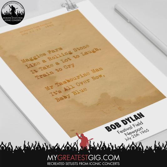 Bob Dylan - Newport - July 25th 1965 Recreated Set List Poster