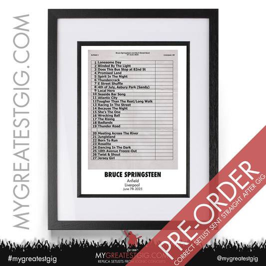 Bruce Springsteen - Liverpool & Manchester - 2025 - Replica Setlist Posters