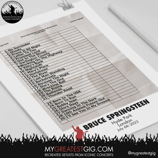 Bruce Springsteen - London - July 6th 2023 Recreated Setlist Poster