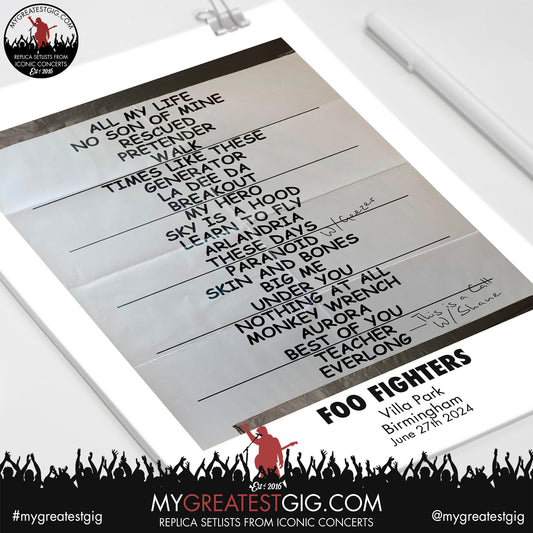 Foo Fighters - Birmingham - June 27th 2024 Replica Setlist Poster