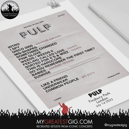 Pulp - Finsbury Park - July 1st 2023 Recreated Setlist Poster