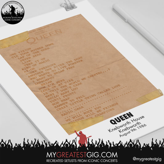 Queen - Knebworth - August 9th 1986 Recreated Setlist Poster
