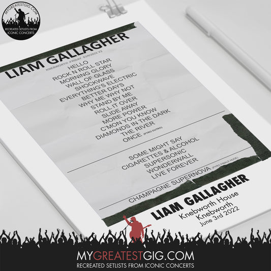 Liam Gallagher - Knebworth - Jun 3rd 2022 Recreated Setlist Poster